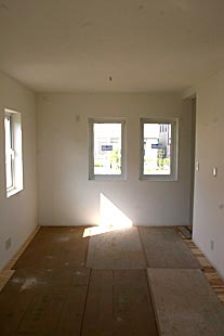 ![]() 内部・吹き抜けと天井の壁紙施工状況 |
