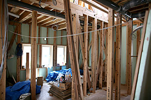内部・2階 吹抜下地施工