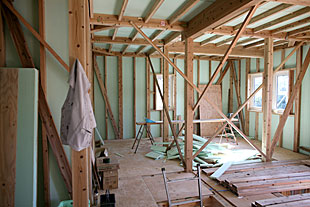 内部・2階 構造躯体と断熱施工1