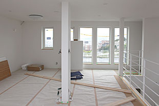 内部・2階 吹抜クロス張り |