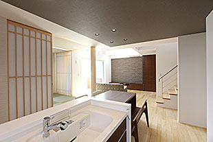内部・キッチンとリビング |