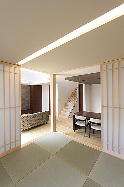 鹿児島の気候に適した高気密・高断熱住宅です。一般家庭用のリビングサイズのエアコンで室内空間のすべてが温度差なく、一年中を快適に過ごせます。